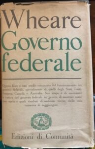 [CZG] TRADUZIONE DI SERGIO COTTA. QUESTO LIBRO E' UNO STUDIO COMPARATO DEL FUNZIONAMENTO DEI GOVERNI FEDERALI, SPECIALMENTE DI QUELLI DEGLI STATI UNITI, SVIZZERA, CANADA E AUSTRALIA. PICCOLI STRAPPETTI AI MARGINI E MENDA ALLA PARTE SUP. DEL DORSO DELLA SOVFRACOPERTA, NORMALI BRUNITURE, FIRMA DI APPARTENENZA ALLA SGUARDIA, BUONO NEL COMPLESSO. PAGG. 498 CARTONATO RIGIDO CON SOVRAC. EDIT MIS MM 225X135