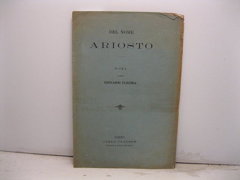 In 8, pp. 8. Br. ed. Estratto dagli Atti della R. Accademia delle Scienze di Torino, vol. XXVIII, adunanza del 27 novembre 1892. Saggio onomastico sull'origine del cognome Ariosto.