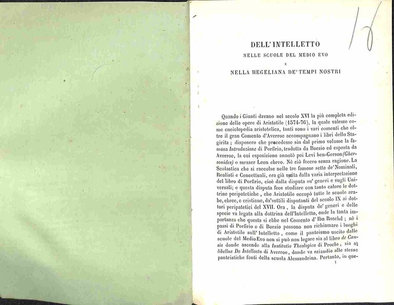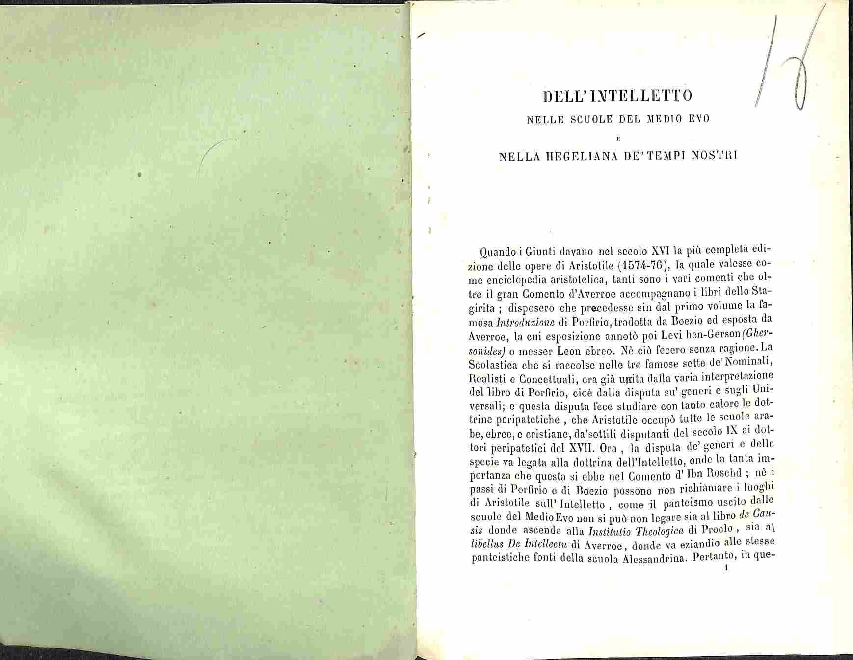 Dell'intelletto nelle scuole del Medio Evo e nella hegeliana de' tempi nostri