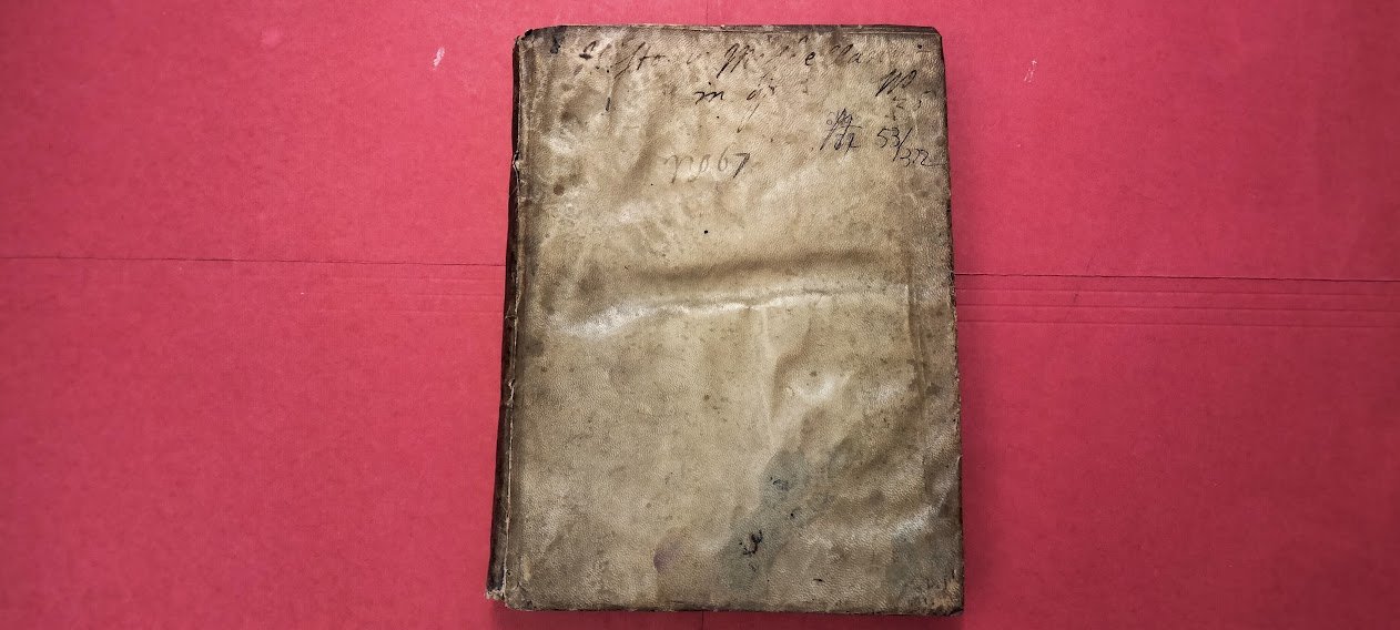 In 8°, p. perg. molle, cc.nn. 4 + 195 + cc.nn. 6 . Front. fig. Capilettera su piccola inc. La p. 111/112 presenta la mancanza dello spigolo inf., mentre la p. 173/174 evidenzia uno strappo che va dal centro p. al marg. est., tale strappo lede il t. ma non ne impedisce la lettura. Segni di matita blu all'interno dei piatti. Mende alle copp.