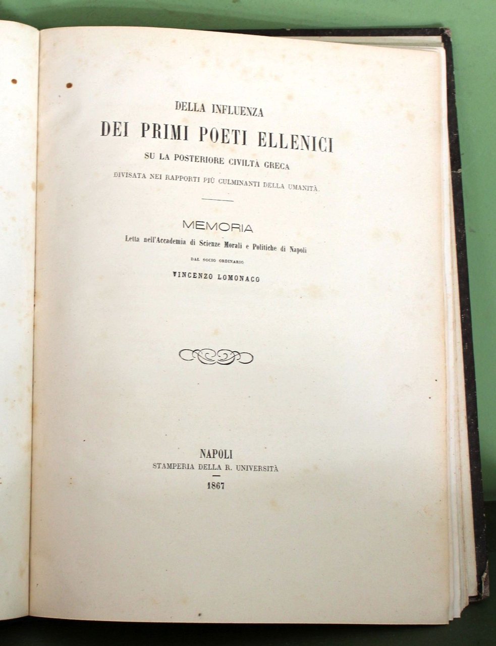 Della influenza dei primi poeti ellenici su la posteriore civiltà greca divisata nei rapporti più culminanti della umanità. Memoria letta nell'Accademia di Scienze Morali e Politiche di Napoli