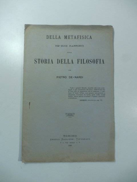 Della metafisica ne' suoi rapporti colla Storia della filosofia