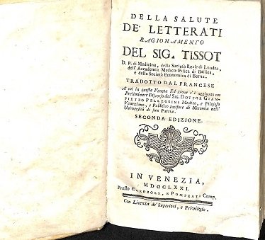 Della salute de' letterati. Ragionamento del sig. Tissot.tradotto dal Francese