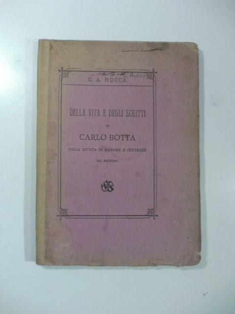 In 8 (cm 16 x 22), pp. 113 + (1b). Brossura editoriale con rinforzo al dorso. Biografia di Carlo Botta seguita da massime e sentenze politiche tratte dalle sue opere.