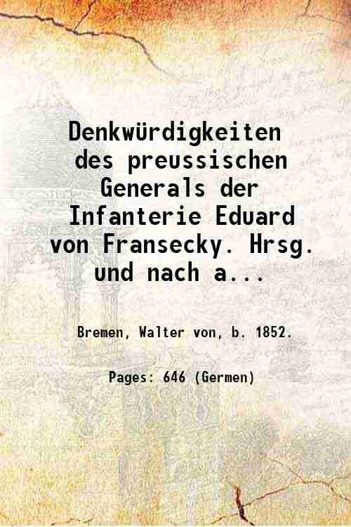 Denkw¸rdigkeiten des preussischen Generals der Infanterie Eduard von Fransecky. Hrsg. und nach anderen Mitteilungen und Quellen erg‰nzt, von Walter von Bremen. 1901