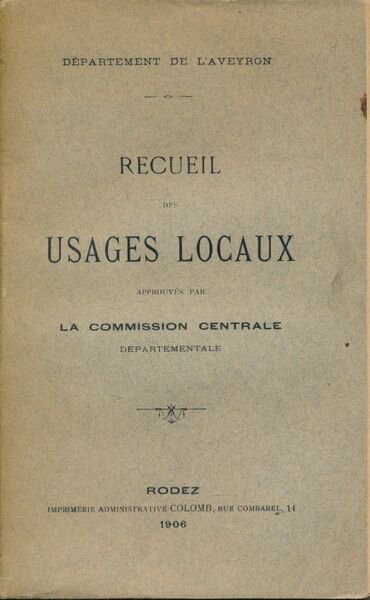 Département de l'Aveyron. Recueil des usages locaux approuvés par la Commission Centrale Départementale