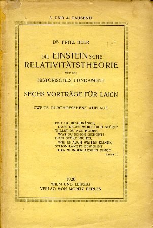 Der Einsteinsche Relativitästheorie und ihr historisches Fundament. Sechs Vorträge für Laien. Zweite durchgesehene Auflage