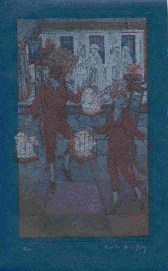 1 Bl., 46 nn. S., 1 Bl., 10 (8 ganzs. und farb.) ORadierungen von Roswitha Quadflieg. Eine zusätzliche num. und sign. Radierung beigelegt. 4°, Handgebundenes, graues OKalbleder m. Lederkapital, Karree-Blindprägung d. Deckel sowie RTitel in Blindprägung in beige OPp.-Schuber (Ausführung: Werkstatt Chr. Zwang, Hamburg). Eins von 40 Ex. der Vorzugsausgabe mit einer zusätzlich beigelegten sign. und num. Rad. - Katalog "Zwanzig Jahre Raamin-Presse" S. 120-129; Zwang, "60 Pressendrucke in Handeinbänden" 56 (beide mit Abbildung); Tiessen 20; Spindler 71.14. (14. Druck der Raamin-Presse). In 150 num. Expl. (Gesamtaufl. 155 Expl.) von Roswitha Quadflieg in Romulus und Cancelleresca Bastarda der Schriftgießerei J. Enschede, Haarlem, auf handgeschöpftem Japan-Papier "Mingei" gedruckt, Impressum von R. Quadflieg eh. sign. Typographie, Handsatz und Druck des Textes in Rot und Blau auf Silber mit Linien-Umrahmung auf der Handpresse von R. Quadflieg. Druck der kombinierten OStiche in Kunstharz und Radierungen (8) bzw. Radierung aufgetönte Fläche (2) bei H. Kätelhön, Möhnesee-Wamel. Blockbuch. Handeinband der Werkstatt Christian Zwang, Hamburg. - The indicated shipping costs refer to books weighing up to one kilogram. - Bücher, die schwerer als ein Kilogramm oder größer als 35 x 25 cm sind, werden als Paket verschickt und kosten innerhalb Deutschlands bis zu zwei Kilogramm 6 Euro, darüber hinaus 7 Euro Porto. -