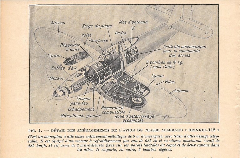 Détail des aménagements de l'avion de chasse allemand Heinkel 112 - Immagine 1938