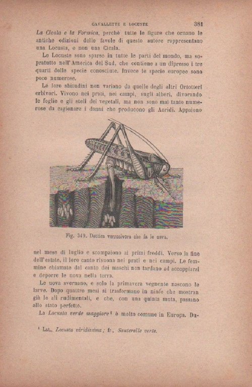 Dettica verrucivora che fa le uova. Vecchia stampa