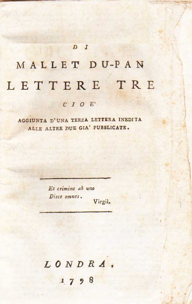 Di Mallet Du-Pan lettere tre cioè aggiunta d’una terza lettera inedita alle altre due già pubblicate