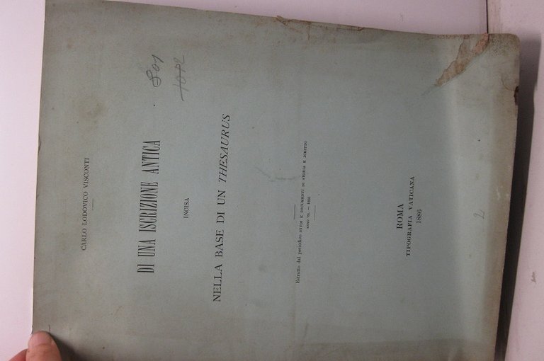 Di una iscrizione antica incisa nella base di un Thesaurus. Estratto dal periodico Studi e documenti di Storia e Diritto, anno VII, 1886
