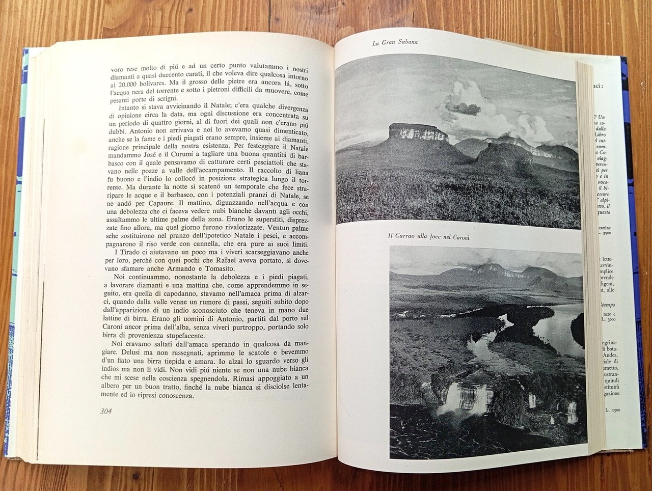 Collana "All'insegna dell'orizzonte", 15 - Volume rilegato in tela editoriale con sovraccoperta a colori, 396 pagine con numerose tavole fotografiche in bianco e nero intercalate. Tenui fioriture alle carte prospicienti le tavole, peraltro copia intatta e molto ben conservata nella sua custodia protettiva in cartoncino -- Alfonso Vinci, alpinista di successo nelle Alpi, trascorse tre anni nelle foreste e savane a sud dell'Orinoco alla ricerca di ori e diamanti.