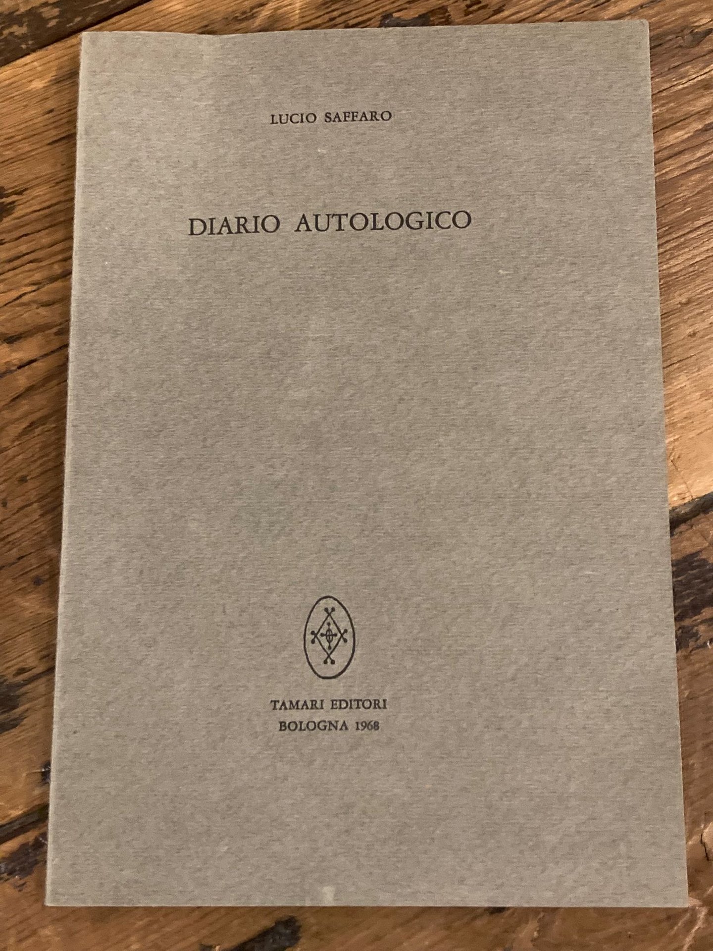 In-16° (17x12 cm), pp. (56), brossura editoriale con titoli in nero. Più che buon esemplare della tiratura ordinaria di 500 copie. Edizione originale di questo serrato diario concettuale pubblicato dall' autore in occasione di una sua personale nella Sala del Comune di Trieste.