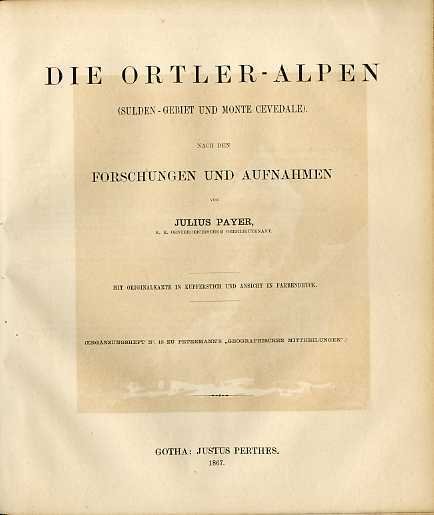 15 p., [1] c. di tav., [1] c. geogr., 27 cm, m.p. mod. su stile antico con titoli oro. Condizioni : USATO - Stato : Buono. Altre note : Bella tavola litografica a colori (veduta del Königspitze) in antiporta e carta geografica ripiegata in fine.