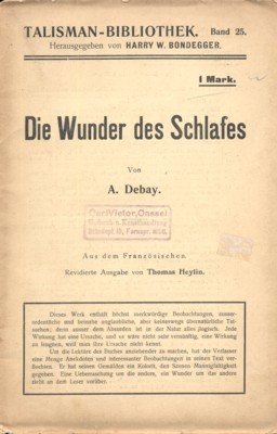 Die Wunder des Schlafes und des Magnetismus. I. Teil: Die Wunder des Schlafes. Aus dem Französischen. Revidierte Ausgabe von Thomas Heylin. Talismann-Bibliothek, Bd. 25. Herausgegeben von Harry Winfield Bondegger.
