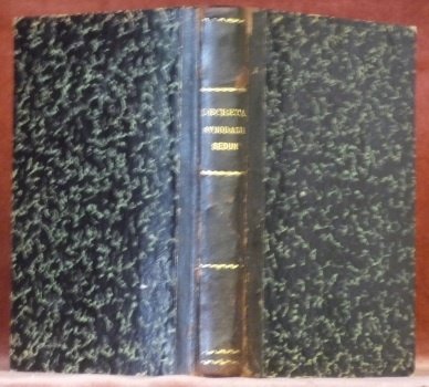 165x100mm, VIII- 239 Seiten, demi-basane noire, titre au dos doré, charnière gauche fendue sur 4 cm., autrement bon état.