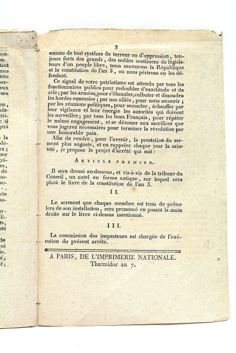 - (à la fin:) A Paris, de l'Imprimerie Nationale, an 7 (1799).