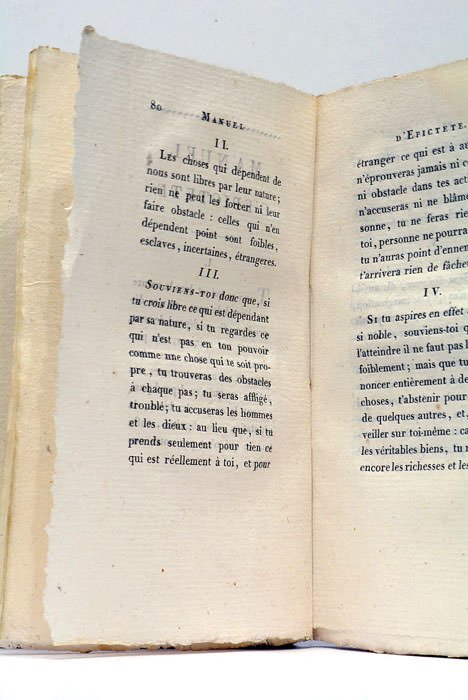 Discours préliminaire pour servir d'introduction à la Morale de Sénèque par M.N. A Paris, chez Didot l'aîné, et de Bure l'Aîné, 1782. RELIE AVEC (à la suite): 2). (du même). Manuel d'Epictète traduit par M.N. A Paris, chez de Bure l'Aîné, et P. Didot l'aîné, 1790.