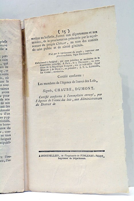 - A Montpellier, de l'imprimerie de Fonlenay-Picot, s.d. (1795).