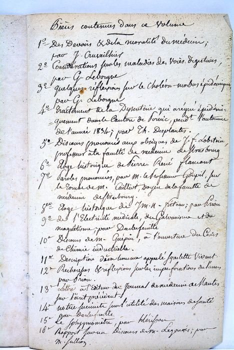 Pages de 515 à 528. 2 feuillets. (19x11,5cm). Dérelié. Papier bruni. Rousseurs. Rare extrait du Lycée Armoricain. Discours sur l'enseignement médical à Paris et en province, où l'on met aussi en garde les étudiants au sujet de la nouvelle doctrine physiologique de Broussais et de ses thèses sur l'inflammation. Liste ou index manuscrit sur le dernier feuillet. Nantes.