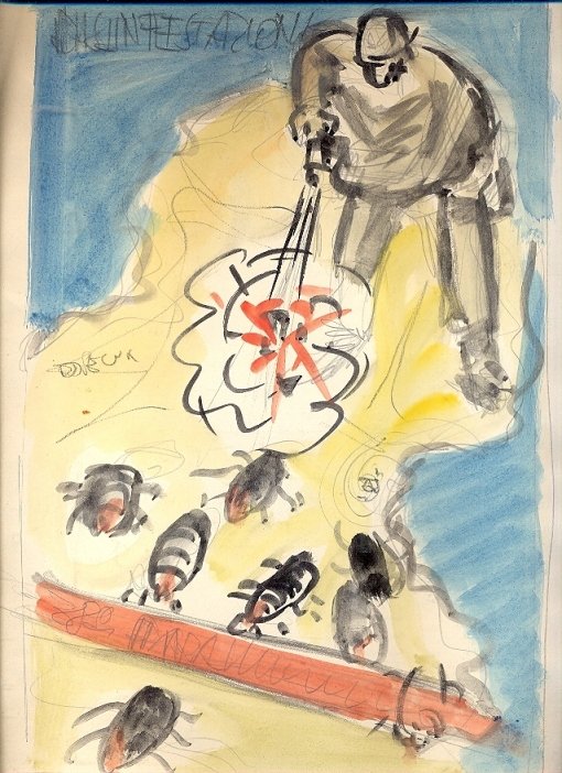 Studio per bozzetto a sua volta usato per manifesto di propaganda. Acquerello su foglio di cm. 34 x 24.