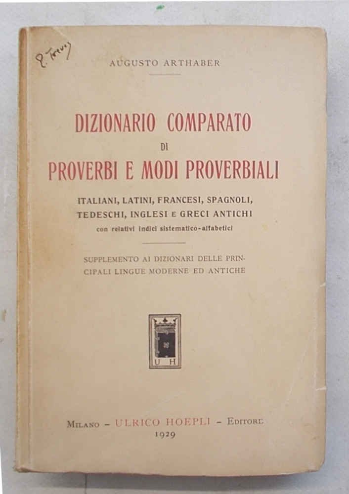 Dizionario comparato di proverbi e modi proverbiali italiani, latini, francesi, spagnoli, tedeschi, inglesi e greci antichi con relativi indici sistematico-alfabetici.