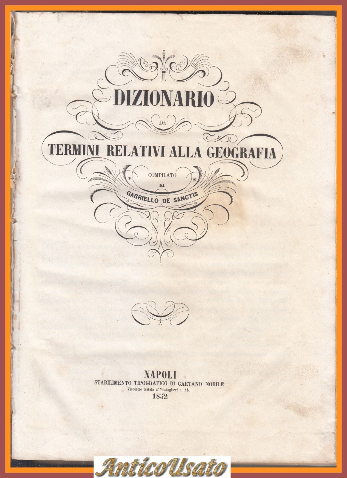 DIZIONARIO DE TERMINI RELATIVI ALLA GEOGRAFIA di G De Sanctis 1852 Libro Antico