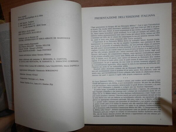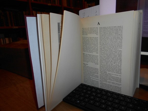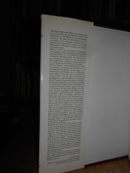 AA. VV. Roma, Borla, Città Nuova, 1995. Dizionario Enciclopedico della BIBBIA. In-8°, similpelle bordeaux con titolo al dorso e sovracopertina ill. a col. 1380 pp. Sovracopertina con lievi segni ma volume ottimamente conservato. Uff. stanzetta mob. a sinistra.