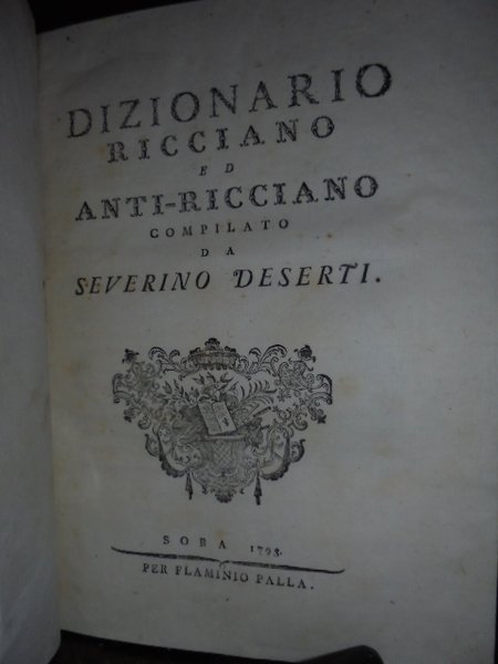 DIZIONARIO RICCIANO ED ANTI-RICCIANO COMPILATO DA SEVERINO DESIDERI. SORA, FLAMINIO PALLA. 1793 1793
