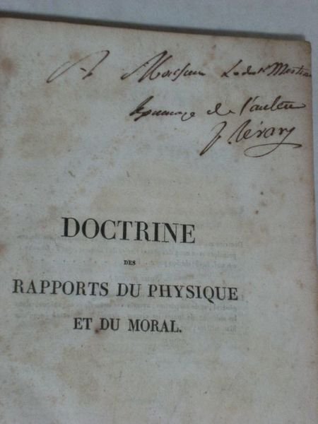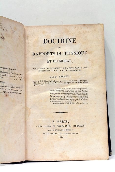 Doctrine des Rapports du Physique et du Moral pour servir de fondement à la Physiologie dite Intellectuelle et Métaphysique. Paris, Gabon, 1823. RELIE AVEC (à la suite :) 2). CAFFIN (Jacques François). Idéologie Expérimentale ou Théorie des Facultés Intellectuelles de l'Homme, établie sur les Faits. Précédée d'une Théorie de l'Homme Organique et suivie d'un Tableau Méthodique des sujets de nos Connaissances. Paris, Migneret, Mai 1824.