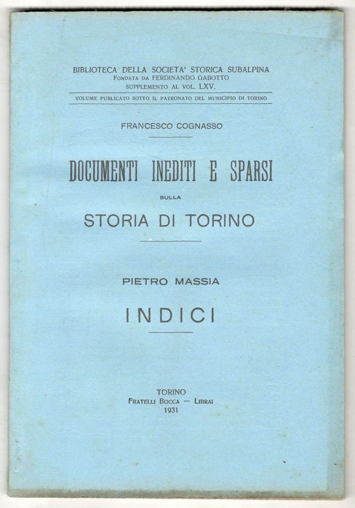 In 8°, pp. da 409 a 539, (3). Brossura editoriale. Copia in buono stato, interamente a fogli chiusi. Volume pubblicato sotto il patronato del Municipio di Torino. Biblioteca della Società Storica Subalpina diretta da Ferdinando Gabotto, supplemento al volume LXV.