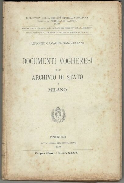In 8°, pp. XIII, (1), 400. Brossura editoriale. Fioriture alla copertina, per il resto copia in buono stato, interamente a fogli chiusi. Volume pubblicato sotto il patronato del conte Cavagna Sangiuliani. Serie promossa dalla Società pavese di storia patria, II. Biblioteca della Società Storica Subalpina, XLVII. Corpus Chart. Italiae, XXXV.