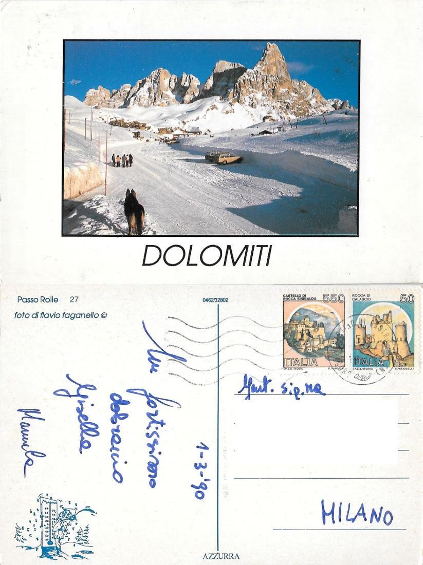 Dolomiti. Passo Rolle. Viaggiata 1990