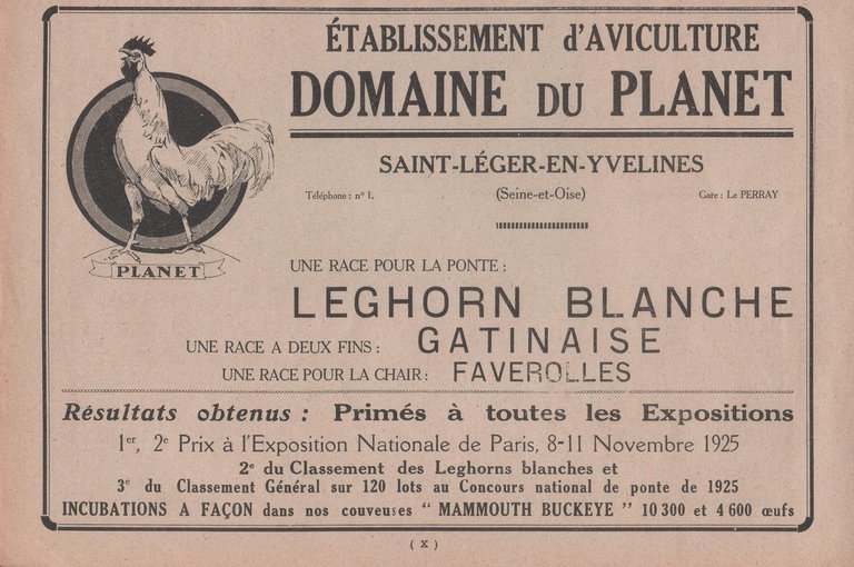 Domaine du Planet, Saint Leger en Yvelines. Etablissement d'aviculture. Advertising 1926