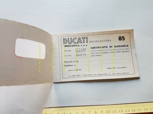 Ducati modelli 85 anni 50-60 libretto tessera garanzia originale no depliant
