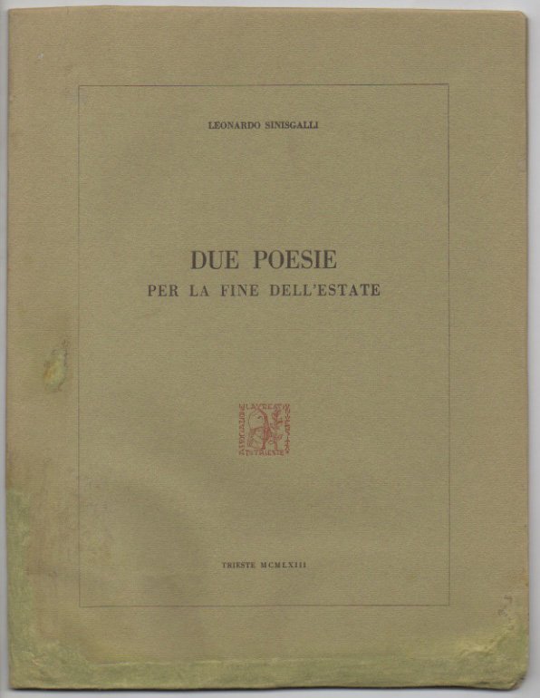 LIBROEdizione originale.Più che buon esemplare, con alcuni restauri visibili al piede e parzialmente al dorso della copertina.Rarissima plaquette stampata a cura di Pio Montesi, presidente dell’Associazione Laureati Università di Trieste per il capodanno 1964. Della stessa fu tirata a parte una serie di testa in pochissimi esemplari completi con un’acquaforte originale.