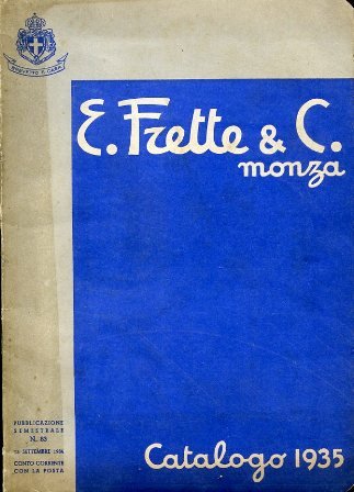 In-8°, pp. 275, brossura editoriale impressa in bianco e in blu. Le pp. 5-13 sono su carta rosa. Interamente illustrato in b.n. o in monocromia n.t. Buon esemplare. Non comune catalogo (l'83°) della fabbrica monzese Frette, specializzata in telerie, tovaglie, biancherie, corredi, ecc.