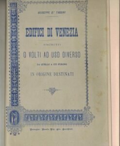 . ACCIOCCHE' IL TEMPO NON CANCELLI SEMPRE PIU' LA MEMORIA DEGLI EDIFICI DI VENEZIA ." LEGATURA MODERNA MA CONSERVATA LA BROSSURA ORIGINALE ANT. PAG.134 PIENA PELLE MODERNA CON TIT ORO AL DORSO MIS MM 230X155"