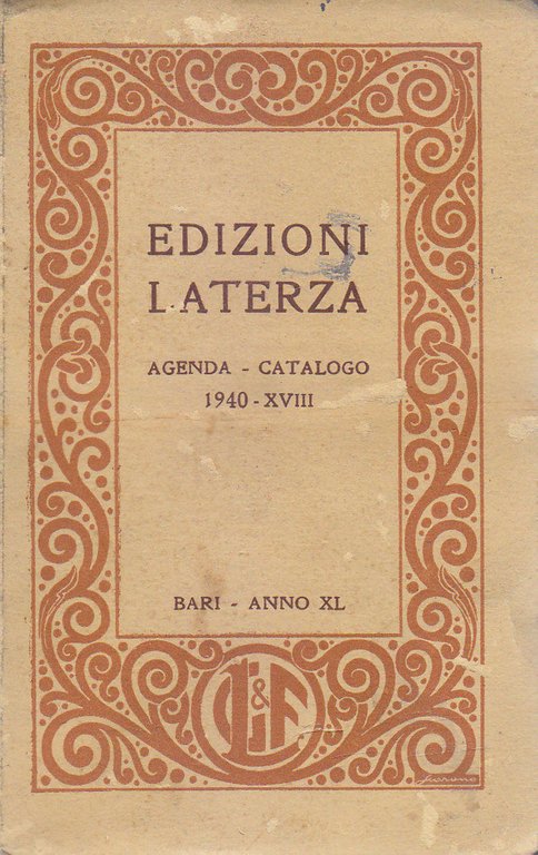 EDIZIONI LATERZA AGENDA E CATALOGO gennaio 1940. 144 Pagine.