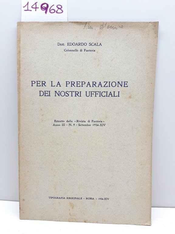 Edoardo Scala colonnello di Fanteria Per la preparazione dei nostri ufficiali estratto dalla rivista di Fanteria anno III numero 9 settembre 1936 tipografia regionale Roma 1936