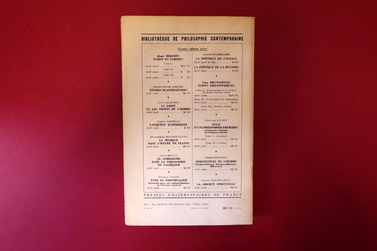 Presses Universitaires de France, Paris, 1960; cm 22,5x14; pp. VIII-392; brossura ed. Edizione francese.