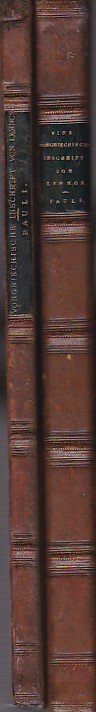 2 voll. in-8°, pp. (4), 81, (2); (2), IV, 262; legatura coeva in p. vitello con triplice filettatura lungo il perimetro dei piatti (due dorate e una a secco). Titolo in oro su tassello ai dorsi. Sguardie marmorizzate. Una tav. litografica ripiegata in fine del primo vol. riproducente l'antica iscrizione di Lemno oggetto della presente memoria. Restauri a cuffie e cerniere. In buono stato. Edizione originale di questa rara memoria epigrafica del noto linguista tedesco, autore anche di importanti lavori di etruscologia. Il secondo volume è posteriore di otto anni al primo (Altitalische Forschungen, zweiter Band, 2 Abteilung).