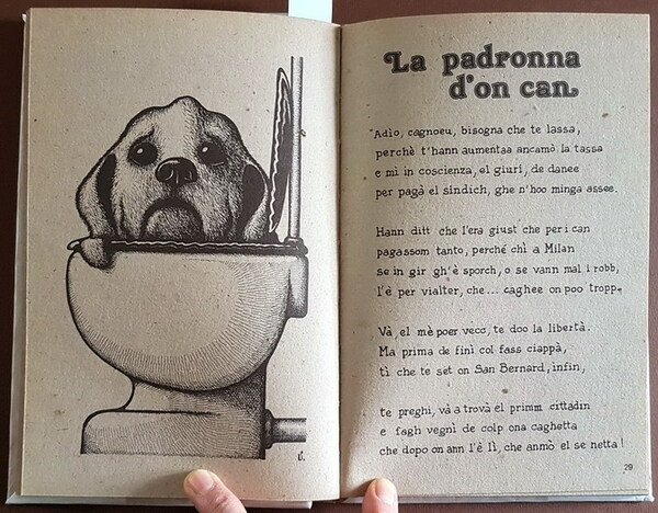Vol. in -8 (16,5 x 25 cm.), legatura editoriale in cartone tipo imballaggio con disegno e titoli in marrone su fondo col. avorio sul piatto ant., velina trasparente di protezione, pp. 85, (7) con diversi disegni a p.pagina (fogli rustici pesanti). In buone condizioni.