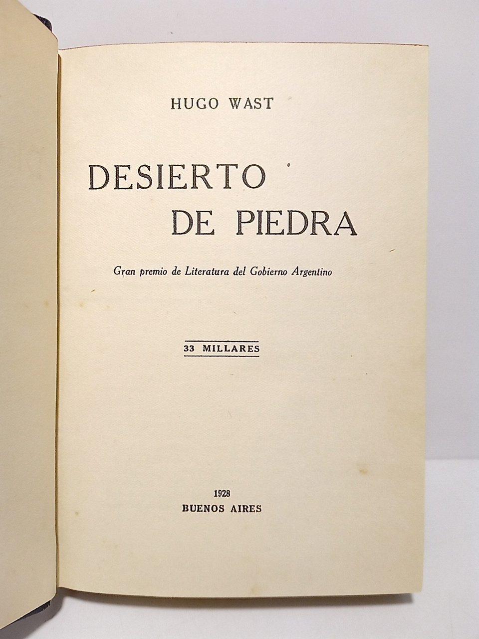 33 Millares, 2ª Edición?.- Buenos Aires: [s.n.], 1928.- 286 p.; 8º (18,8 x 13 cm); Media piel, lomo dorado, cabeza tintada en granate.* Excelente estado, aunque no conserva las cubiertas originales. Al final de la obra el autor escribe "Flor de Durazno junio 4 de 1924", fecha en que terminó el libro. Alguna bibliografía señala que fue editado en 1925, aunque otras indican [ca. 1925]. Entendemos por tanto que nuestro ejemplar es muy probablemente la 2ª edición. LITERATURA, ESTUDIOS LITERARIOS, FILOSOFÍA Y PENSAMIENTO IBEROAMERICANO EN GENERAL