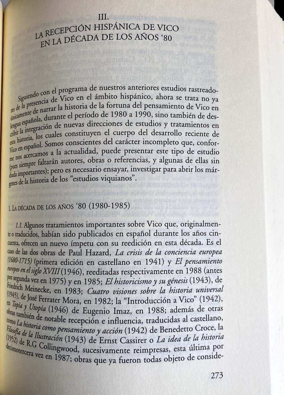III. LA RECEPCIÓN HISPÁNICA DE VICO EN LA DÉCADA DE LOS AÑOS ‘80