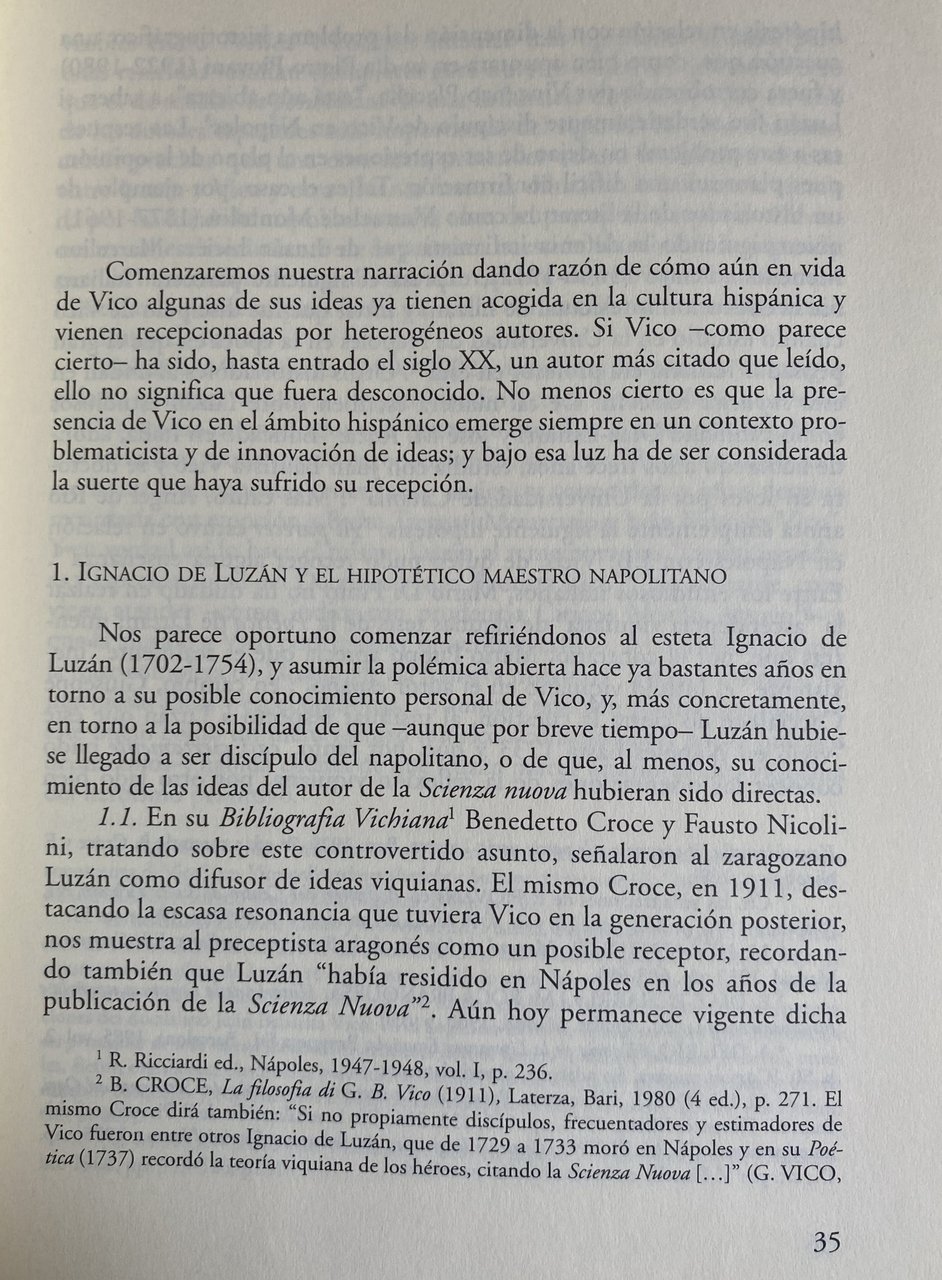 I LA RECEPCIÓN DE VICO EN LA CULTURA HISPÁNICA EN EL SIGLO XVIII
