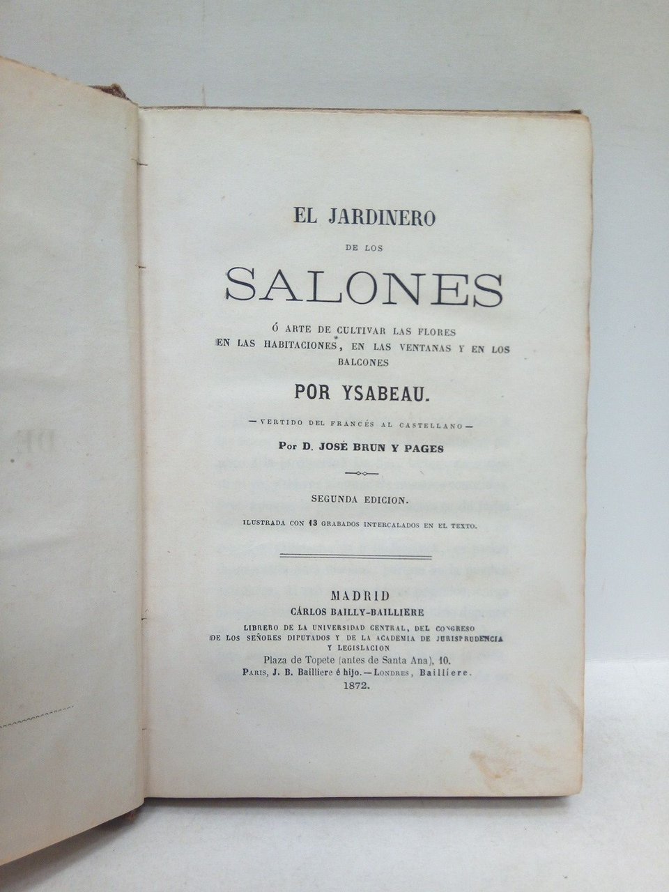 El jardinero de los Salones ó Arte de cultivar las flores en las habitaciones, en las ventanas y en los balcones / Vertido del francés al castellano por D. José Brun y Pages