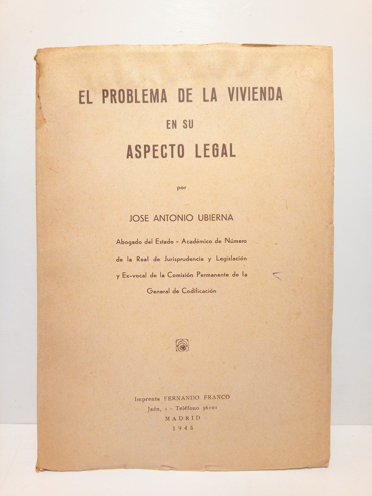 Madrid: Ed. Castro, 1945.- 86 p.; 4º menor (22 x 15,5 cm); Rústica Ed.- Interesante estudio soble la política de Vivienda desarrollada en tiempos de Franco. RARO.* Las cubiertas algo ajadas. TRABAJO, DERECHO LABORAL, SOCIAL Y RELACIONES CON LA EMPRESA