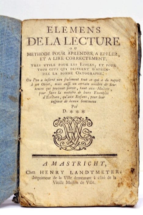 ELEMENS DE LA LECTURE ou méthode pour apprendre a epeler, et a lire correctement. Tres utile pour les ecoles, et pour tous ceux qui desirent d'aprendre la bonne orthographe.